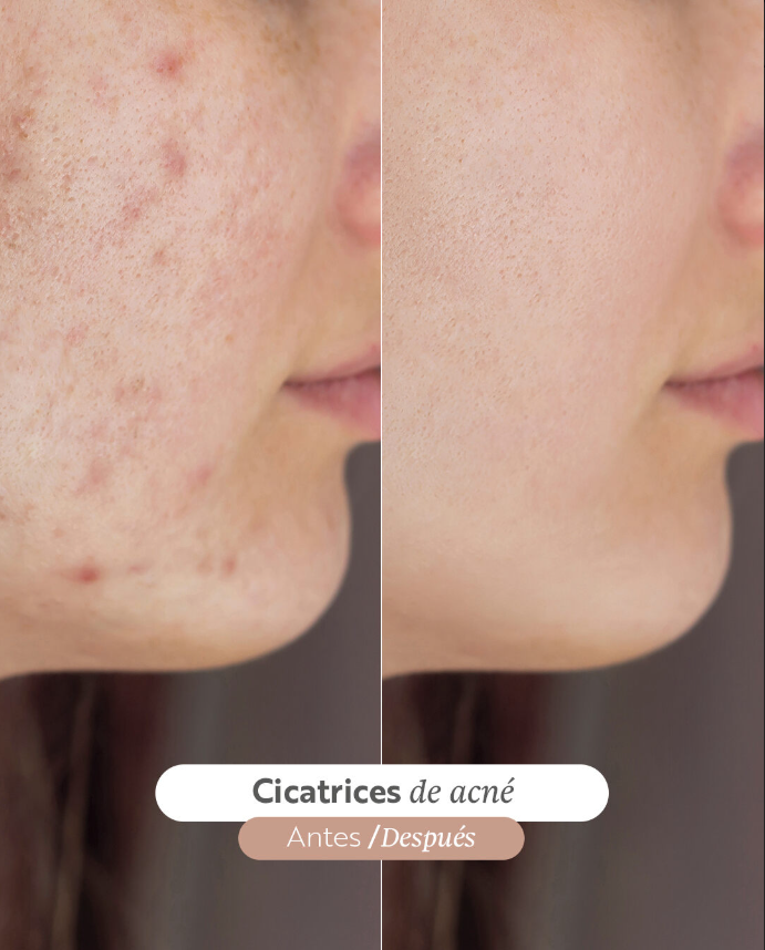 ❌ Cicatrices y marcas de acnés